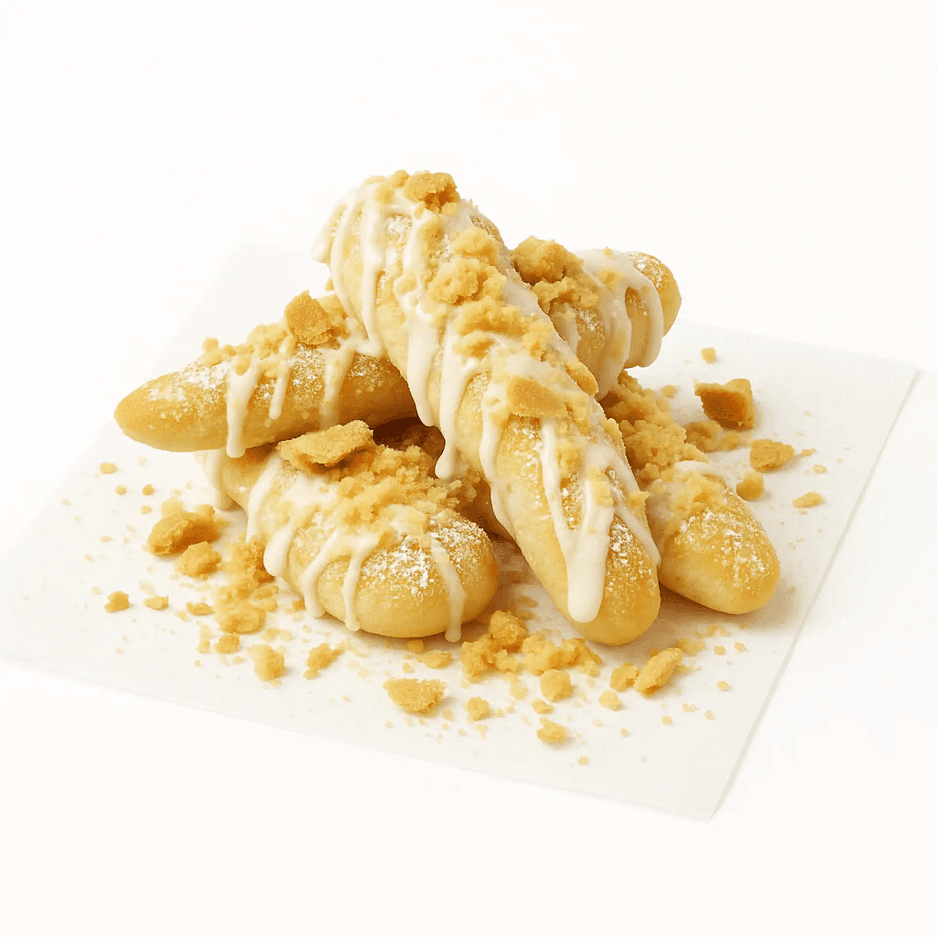 Warm Dessert Stix dusted with banana sugar, topped with Nilla wafer crumbles, banana cream, and a fluffy marshmallow drizzle for a pudding-inspired classic.